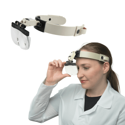 Stirnlampe V5 Max mit 6 verschiedenen Vergrößerungen und 3 einstellbaren LEDs