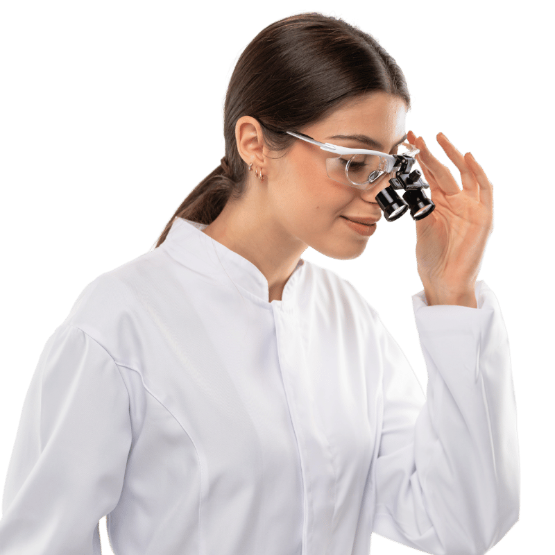 • Die Vielseitigkeit der Lupe X2 ist unübertroffen. Die Qualität der Linsen und die einfache Anpassung machen es zu einem Vergnügen, in der richtigen Entfernung zu arbeiten, ohne mich zu nah an den Patienten heranbeugen zu müssen.