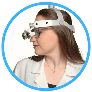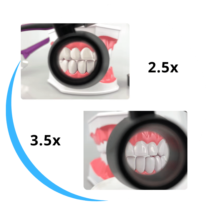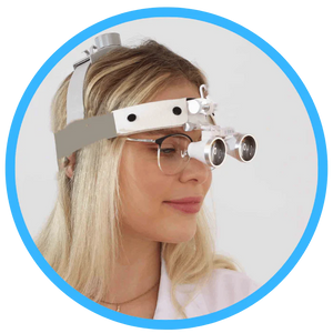 Glaslinsen mit 2,5x und 3,5x Vergrößerung sowie Fokussierabständen von 25 bis 55 Zentimetern. Mit den binokularen Linsen müssen Sie nicht mehr so nah an Ihrem Patienten sein!