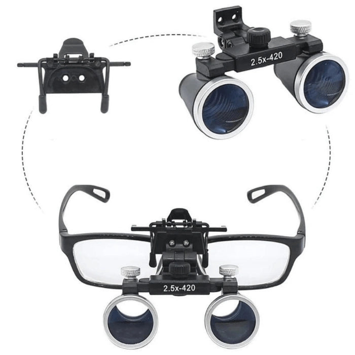 Glaslinsen mit 2,5-facher oder 3,5-facher Vergrößerung und einer Brennweite von 30 bis 42 Zentimetern.