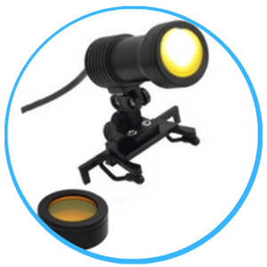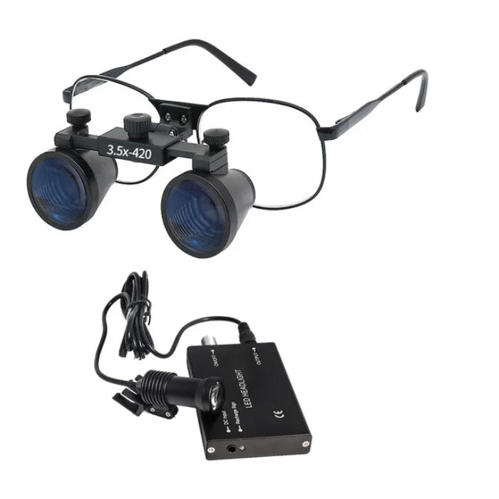 Glaslinsen mit 2,5-facher oder 3,5-facher Vergrößerung und einer Brennweite von 30 bis 42 Zentimetern.